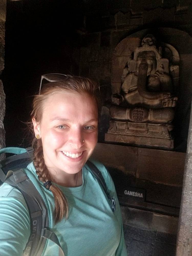 Left: Shiva temple. Middle: Me in front of the state of Ganesha in Shiva temple’s western chamber. Right: Brahma temple.