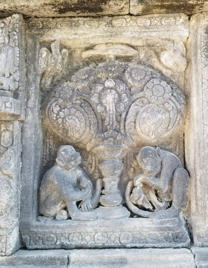 An image of a “Prambanan panel” as seen throughout Candi Prambanan. The animals in this panel appear to be peacocks.