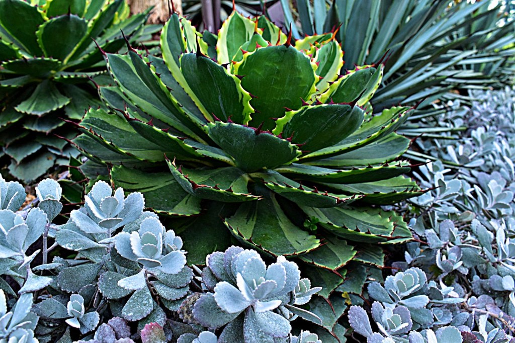 Sights in the succulent garden: the caterpillar from Alice in Wonderland and sample of a succulent.