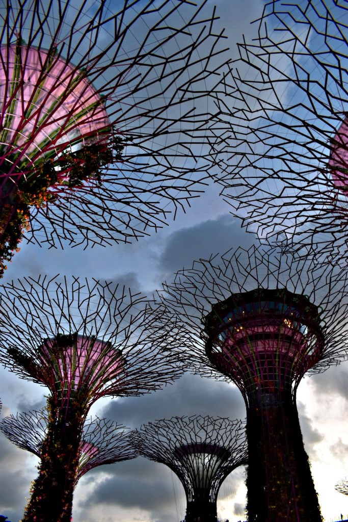 Different perspectives of the Supertrees in Gardens by the Bay.